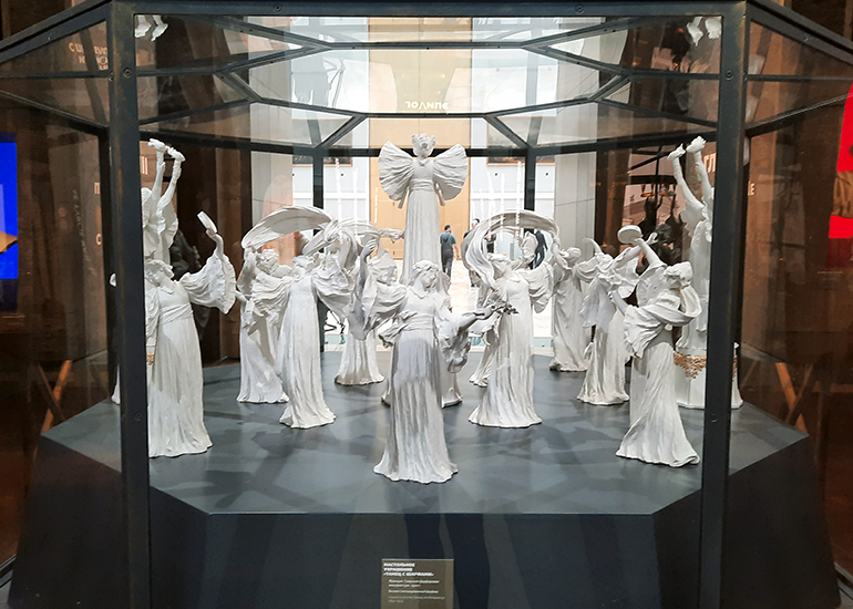 Завершается выставка встречей с главной героиней иммерсивного расследования – статуей Виктории Кальватоне. По обе стороны от неё расположены интерактивные инсталляции «Кабинет детектива» и «Центр исследований и реставрации».