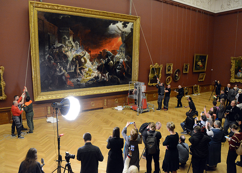 В Академическом зале №14 Михайловского дворца сотрудники Русского музея завершили монтаж всемирно известного шедевра Карла Брюллова «Последний день Помпеи».
