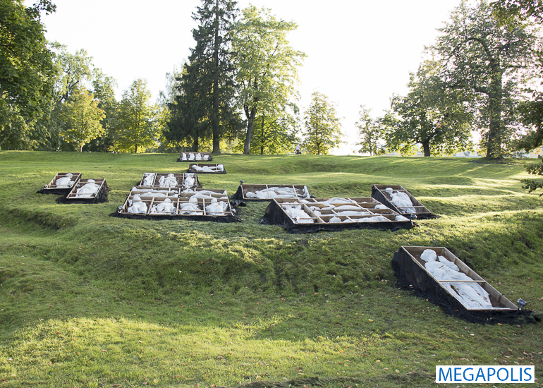 На пространстве от дворца «Марли» до Монплезирской аллеи посетители увидели несколько инсталляций: «Путь к возрождению» — рассказ о восстановлении парков Петергофа, «Скрытые в земле» — рассказ о спасении парковой скульптуры и ее возвращении после окончания войны, «Кинохроника» — показ уникальных кадров послевоенного состояния архитектурных памятников Петергофа.