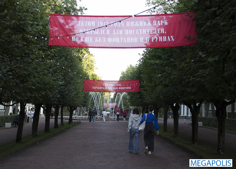 Организаторы напомнили посетителям Петергофа, какой подвиг совершили реставраторы и сотрудники музея, восстанавливая разрушенные войной здания и собирая экспозицию.