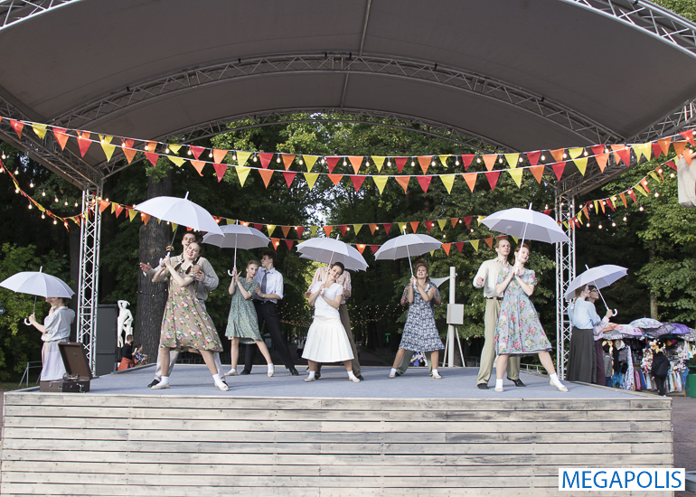 В год празднования 80-летия Победы в Великой Отечественной войне пространство Нижнего парка с помощью современных мультимедийных средств и арт-инсталляций на два дня «возвратилось» в послевоенное время.